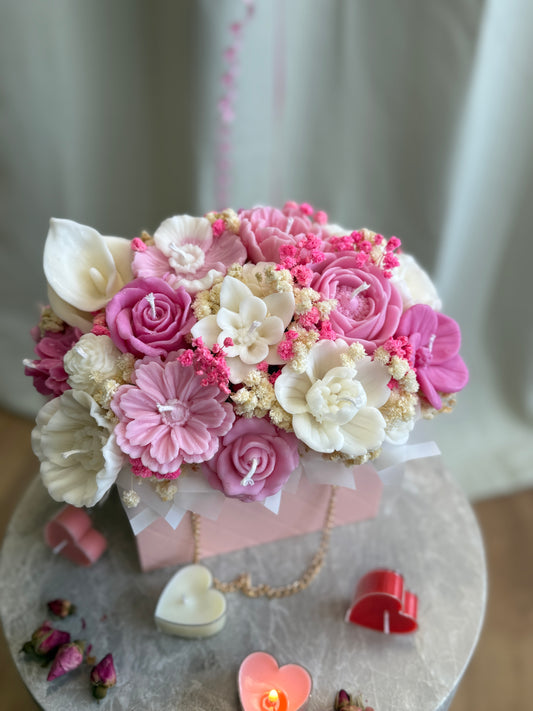 Each bouquet is carefully arranged with beautifully shaped soy candles and accented with dried flowers for an elegant, gift-ready presentation.